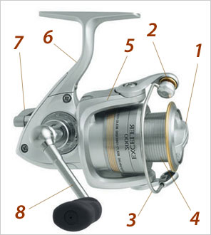 За счет возвратно - поступательных движений шпули, перемещающейся "вперед-назад" под вращающимся укладчиком, леска наматывается не в одном месте, а по всей длине барабана.