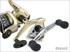 В катушках скоростных моделей применяют двойную рукоять или дополняют ее компенсатором (фото 5), для предотвращения вибрации, связанной с дисбалансом рукояти.