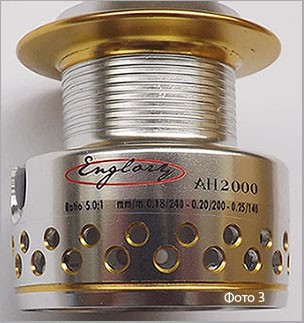 Для большей точности при сравнении катушек по размеру, необходимо учитывать название и модельный ряд катушки. На Фото 3 название катушки выделено красным цветом, а модельный ряд обозначен буквами "AH" перед цифровой подписью "2000".