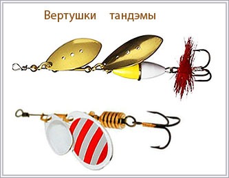 Частный случай вертушки – тандемная блесна. Спереди на оси стоит меньший лепесток, сзади – больший, это имитирует стайку рыбок. Вибрация приманки более интенсивна и привлекает щуку с большего расстояния. Может увеличить число поклевок тандем из двух блесен – спереди идет небольшая вертушка, за ней, на поводке – колебалка.
